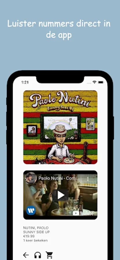 You will be taken from the application directly to Youtube to continue listening, or click on the webshop icon to go directly to the webshop.
