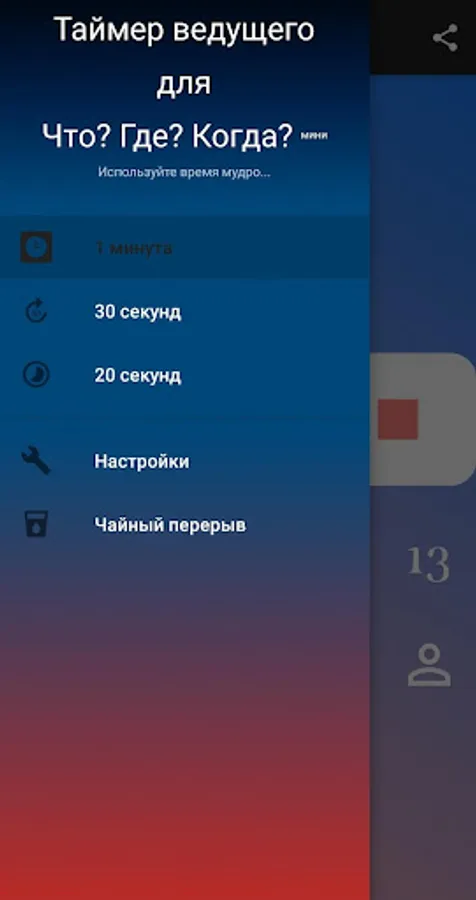 - Beeps at the beginning of the countdown, for 10 seconds and when the time is out (can be disabled in the settings)