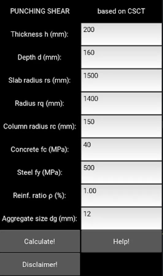 The App is a learning tool for those of you interested in punching shear in Reinforced Concrete flat slabs. The app contains an implementation of Critical Shear Crack Theory (CSCT) for punching shear in reinforced concrete flat slabs based on: