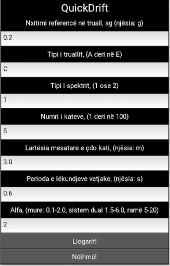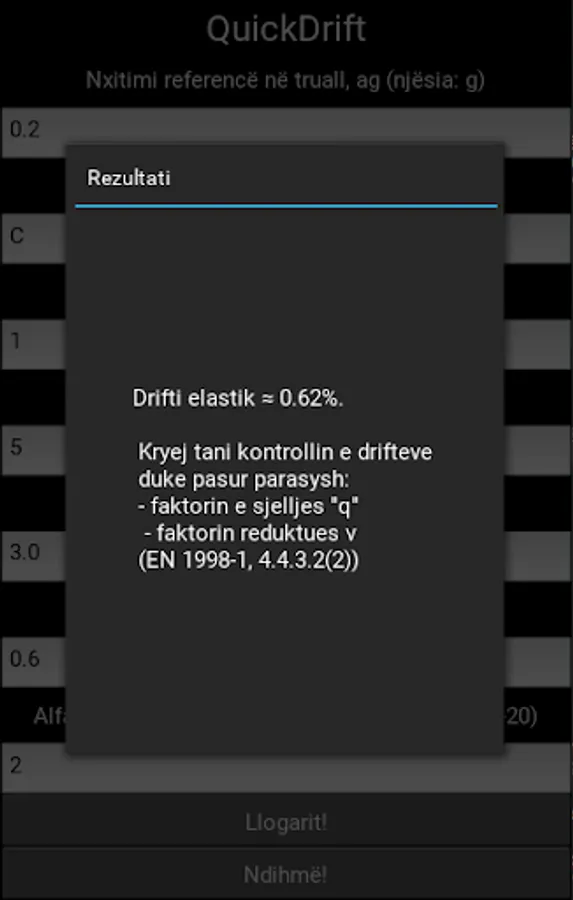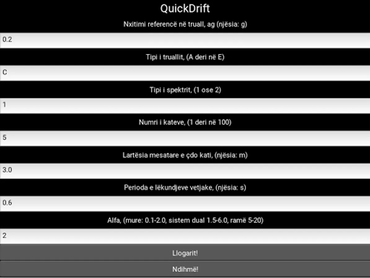 QuickDrift is a testing phase app for quick and approximate calculation of drifts in reinforced concrete buildings. The input data are: number of floors, description of the spectrum according to Eurocode 8, type of structure (walls, frames, dual system, etc.) and the basic period of oscillations. The result that is obtained almost immediately is the elastic drift, from which the design drift can be obtained depending on the "q" behavior factor and various reductions depending on the boundary condition. This app can be used to verify structural models, to create a quick and approximate idea of existing structures, to help with conceptual design, and more. The calculations are based on the concept of "Generalized interstorey drift spectrum", by Miranda, E., and S. D. Akkar. The app was written by B. Isufi and is currently being tested.