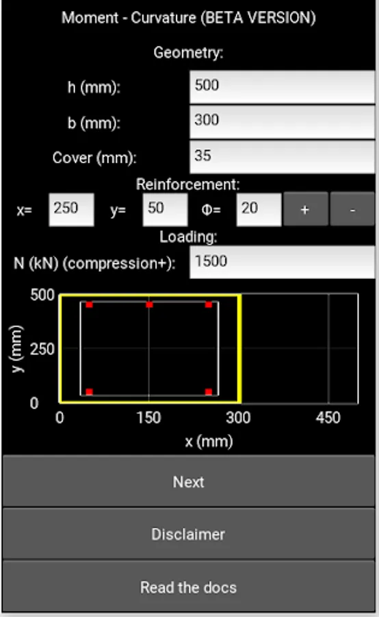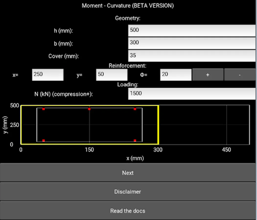 This app is a GUI for the opensource project https://github.com/brisidi/moment-curvature/. The app performs moment-curvature analysis of rectangular reinforced concrete sections.
