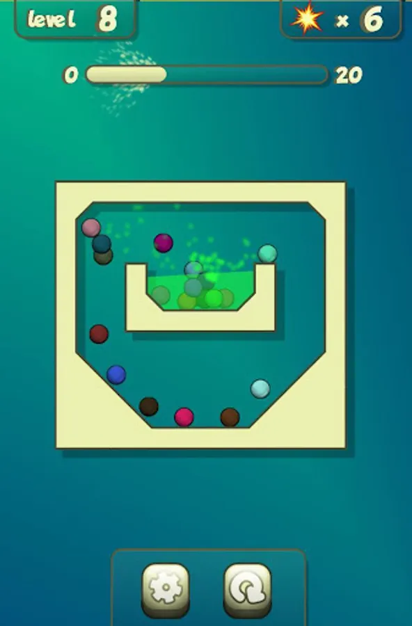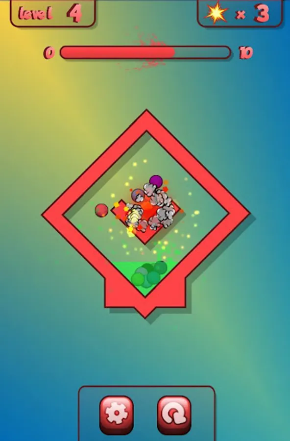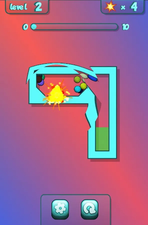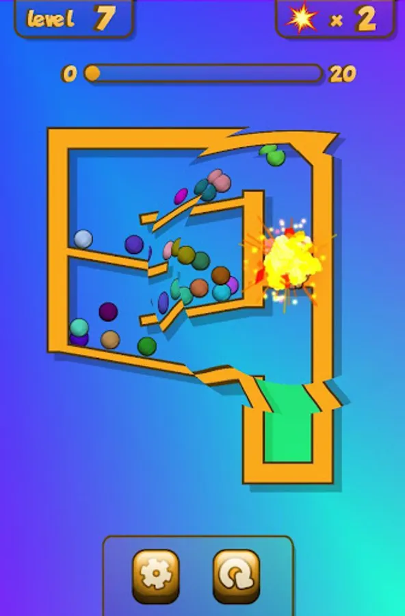 ★ Use explosions to move all colored balls to the goal area.