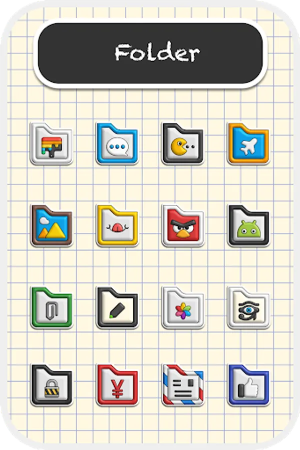 The icons of Poppin are drawn High Definition, you can increase or decrease the size with your Launcher without losing quality.