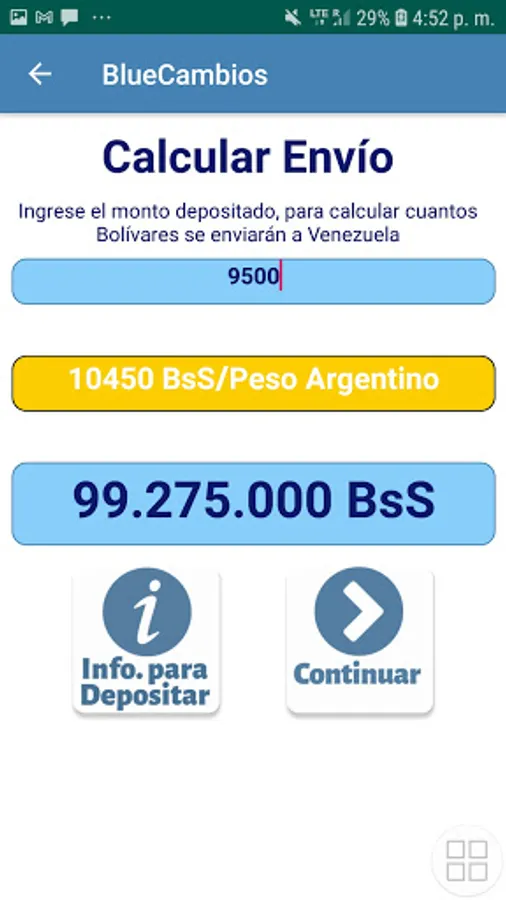 In BlueCambios we offer the service of sending remittances to Venezuela, operating with the best rates in the market and always attentive to the needs of the client, with a light and fast application, compatible with practically any android device with internet access, to facilitate the process of sending remittances ..