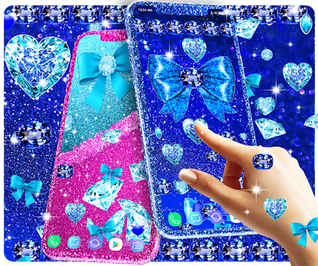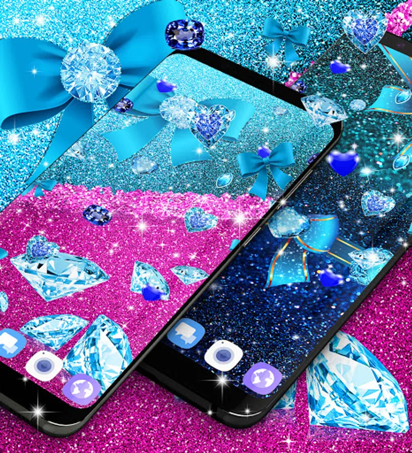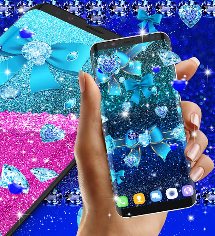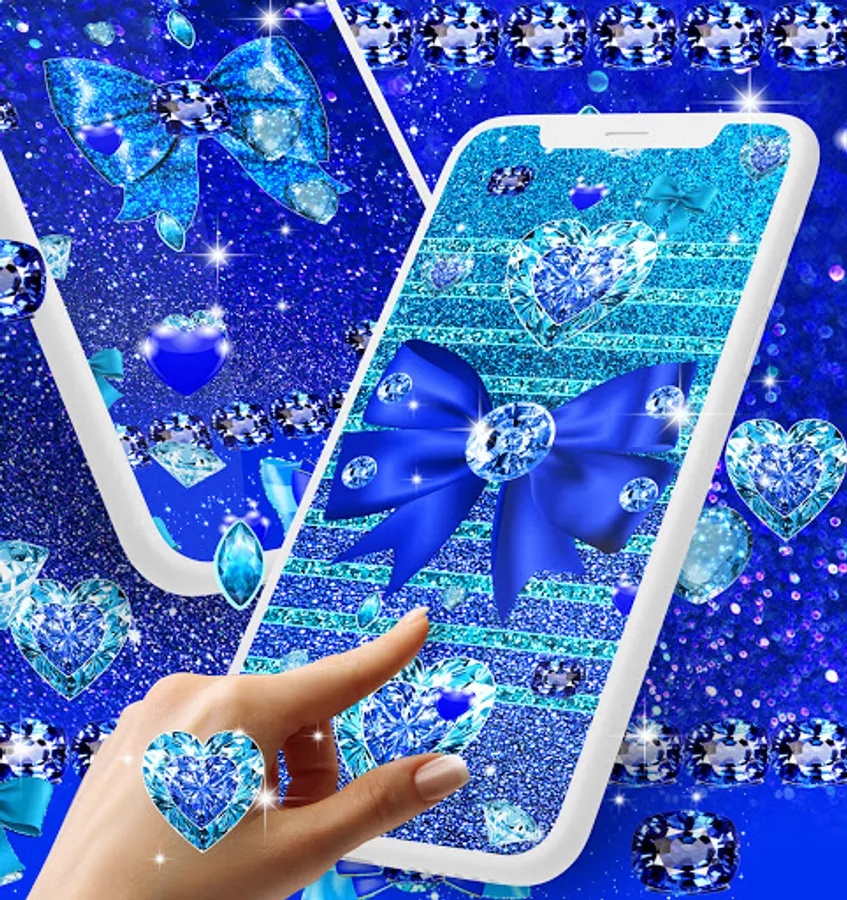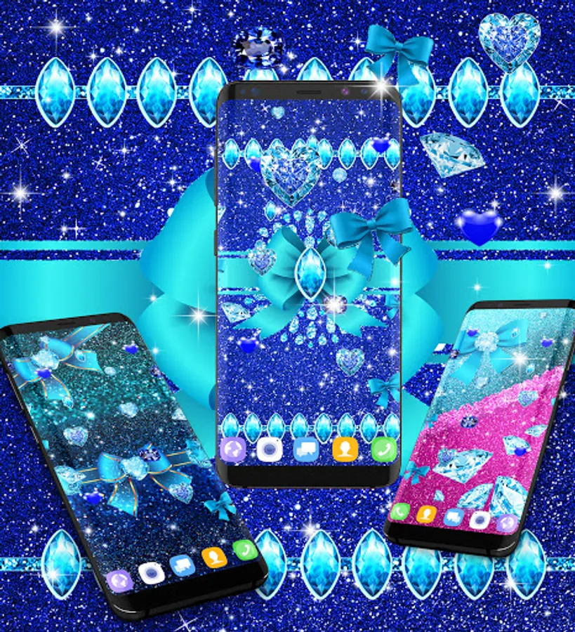 You will find beautiful wallpapers with diamonds, bows, glitters in shinny designs, crystals and jewels combined with different shades of blue like turquoise or dark. This app will make your phone stand out and is perfect for white and black phones.