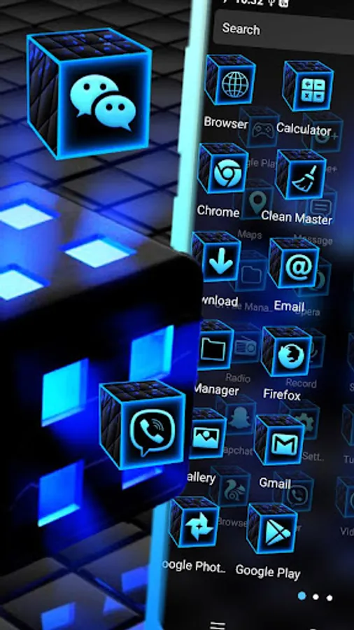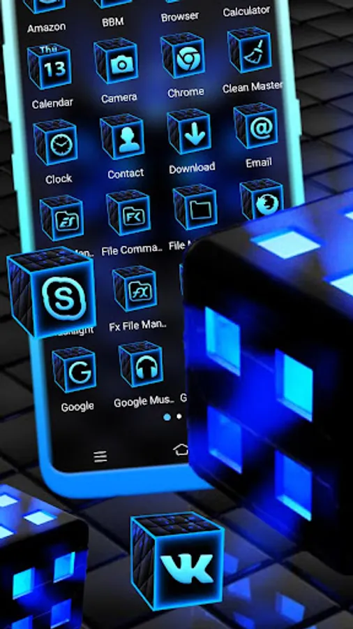 - Install this Blue Neon 3D Cube Launcher Theme.