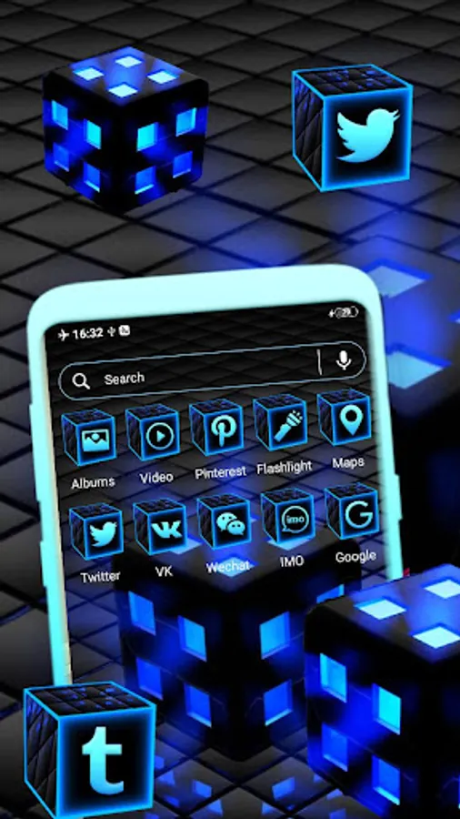 Blue Neon 3D Cube Theme has been created to give you the best unique customization option for your phone.