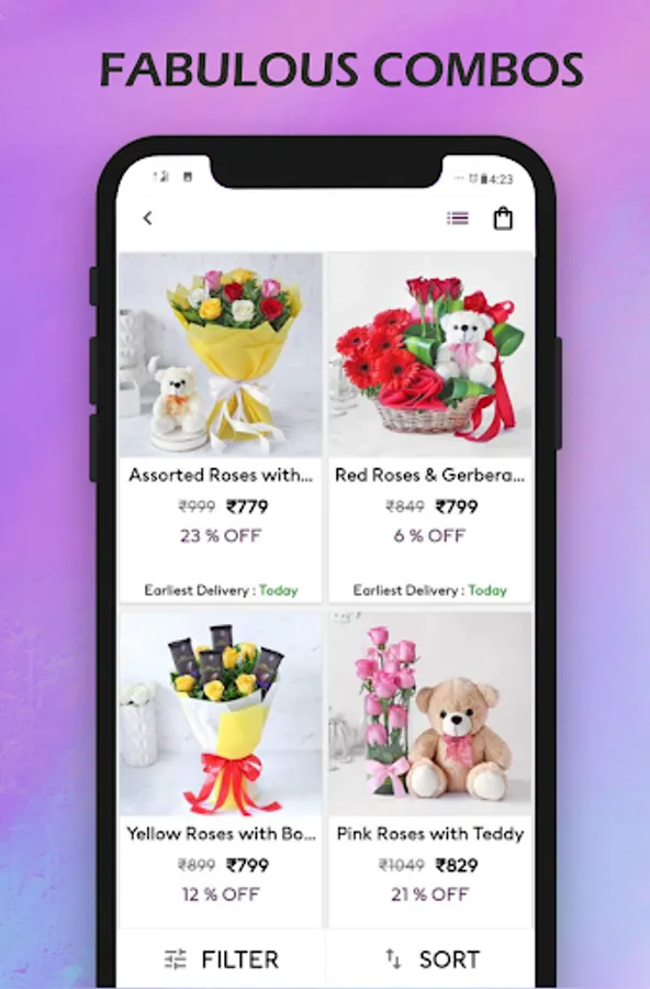 Sometimes it is not enough to just send a cake or flowers alone to loved ones, so we came up with an boomling delight Combo's of Cake & Flowers, Cake & Teddy, Flowers & Chocolates, Cake, Flowers, Chocolate, Teddy & Greeting. Now Send Gifts, Order Flowers Online or Buy Cakes from one app
