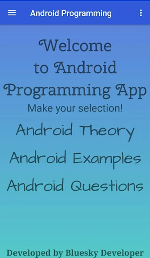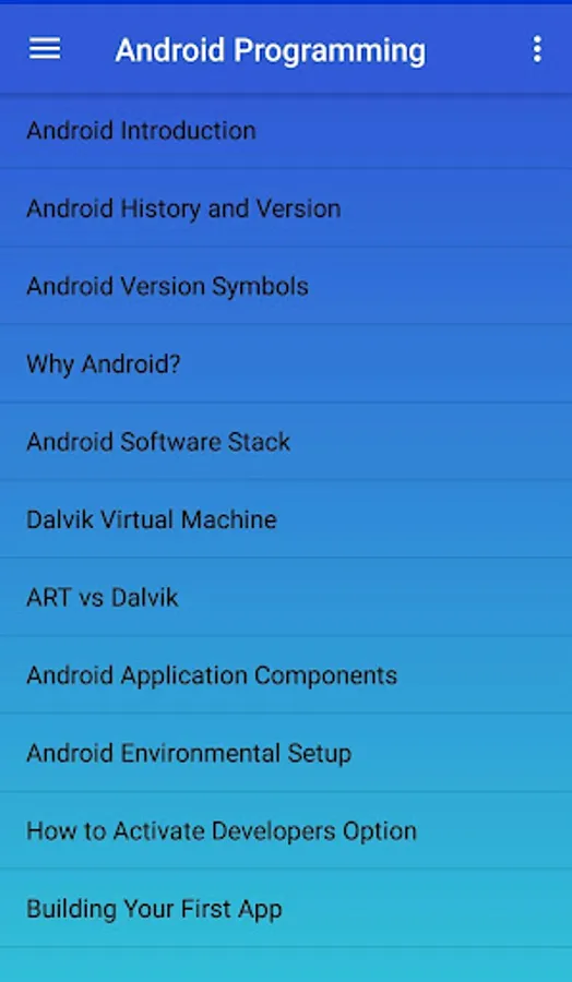Learn Android Programming an app with all in one feature. Theory topics covered with programs. An contains many theoretical concepts and programs to learn daily.