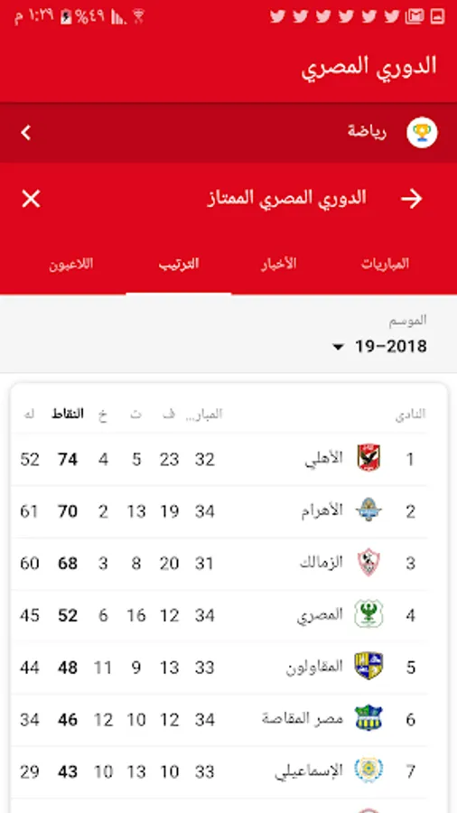 You can now track all the news and statistics of the league and Egyptian Premier League on your phone