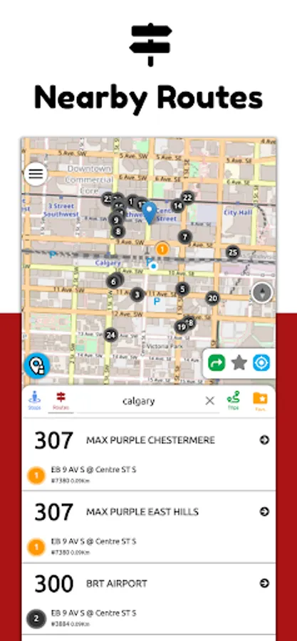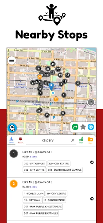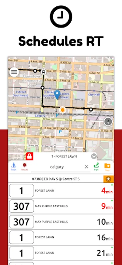 Calgary Transit Real Time App offers interactive commuting over the map along with real time buses arrival schedules at any given location in the city of Calgary.