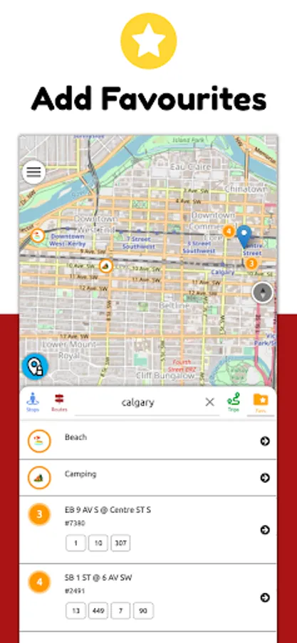 - Favourite your bus and ctrain stops