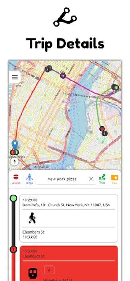 - Transit routes are available on the map along with the transit vehicle driving direction.