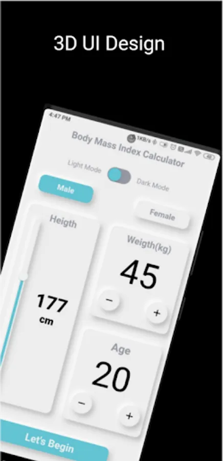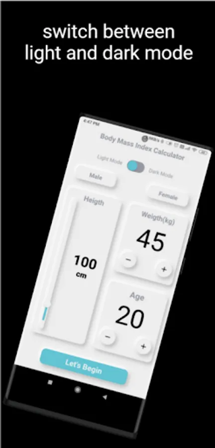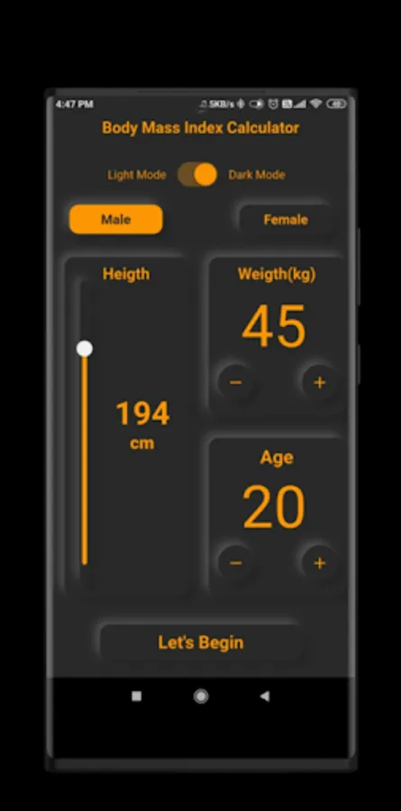 * Enter your weight(kg) and height (cm) and Age and click on Lets begin