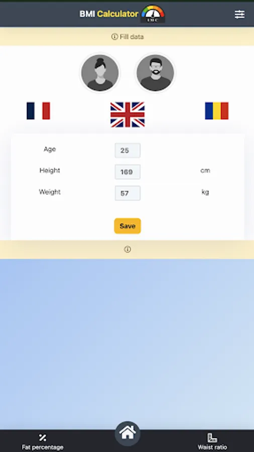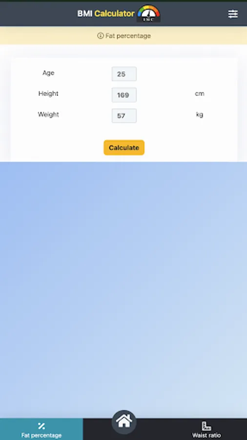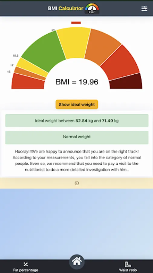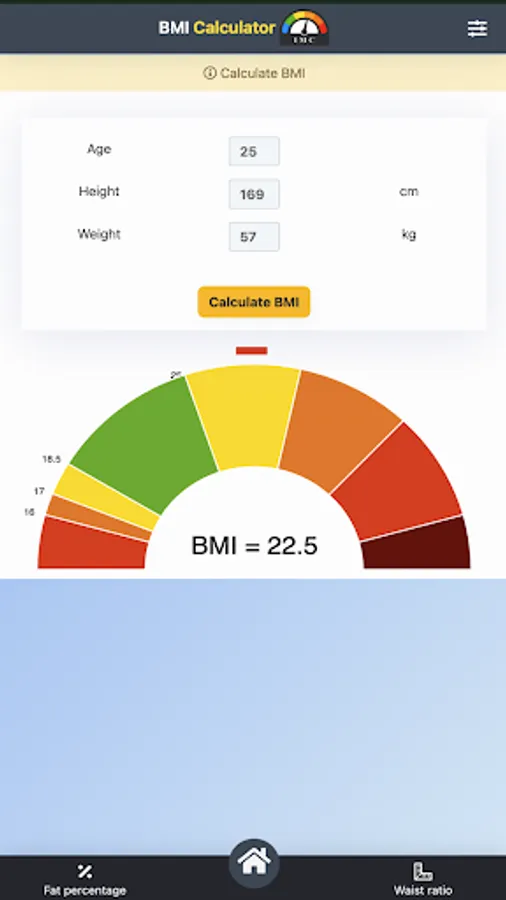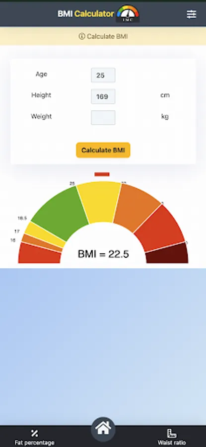 BMI calculator, body mass index calculator, height-to-waist ratio calculator, fat percentage calculator.