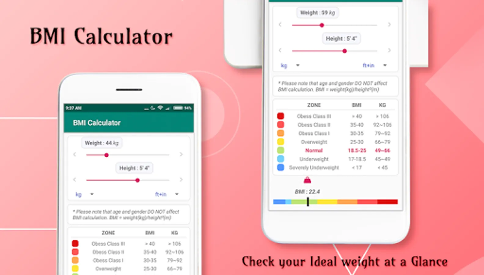 BMI Calculator app monitor BMI and percentage of fat in your body.