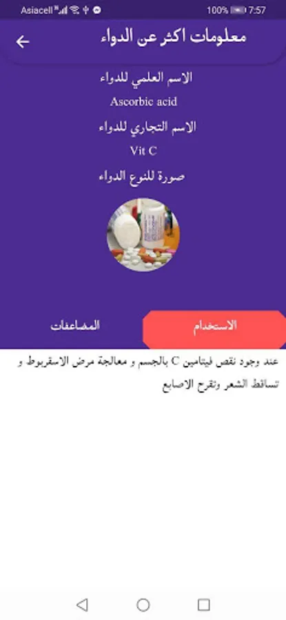 تطبيق من شركة BMK ، يساعد هذا التطبيق بمعرفة نوع الدواء واستخدامة والمضاعفات التي ممكن ان تحصل من استخدام الدواء ،يمكن البحث عن طريق الكتابة او عن طريق استخدام الكاميرا