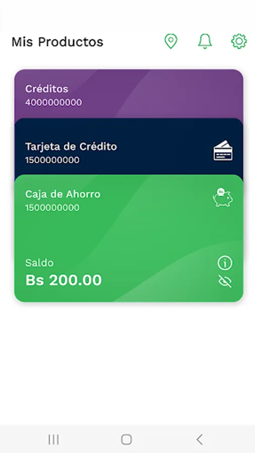 • Credit Cards: Check the status of your credit cards and pay them from your device the moment you want.