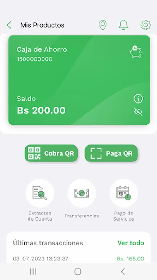 • Consolidated accounts: Enter the mobile application with the same authentication method used for the web portal and manage all the accounts you have in the Bank both personal and legal.