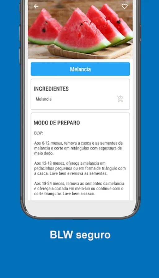 My Baby: Baby Food baby and BLW provides also a detailed, clear and age about how you should offer the food safely in BLW for your baby. All foods that have such a description are marked with a stamp 'BLW'.