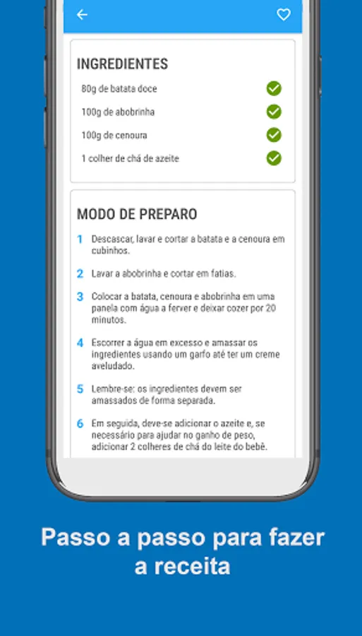 It is with this commitment that My Baby: Baby Food and Baby BLW offers over 200 quick recipes, practical and delicious for you and your baby to enjoy. Within these recipes, we have divisions that classify the ideal meal (lunch, for example) for each recipe.