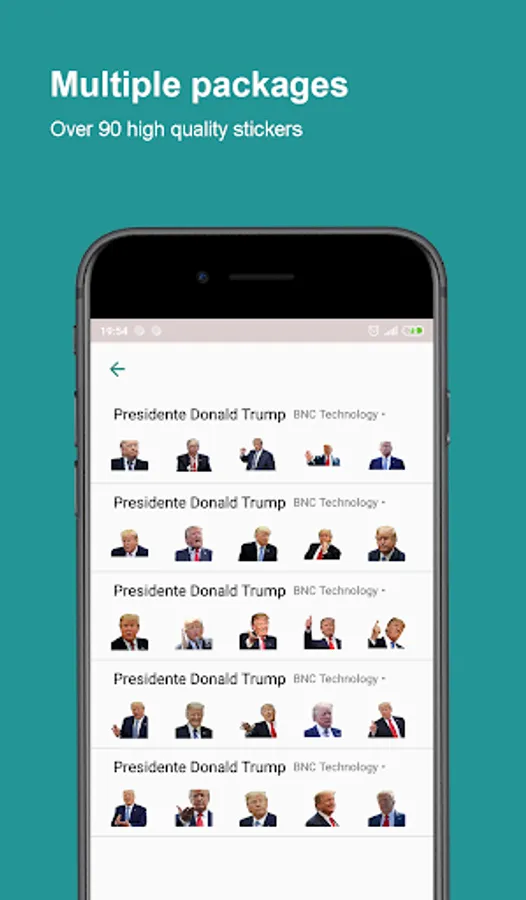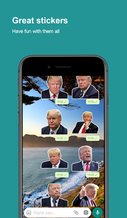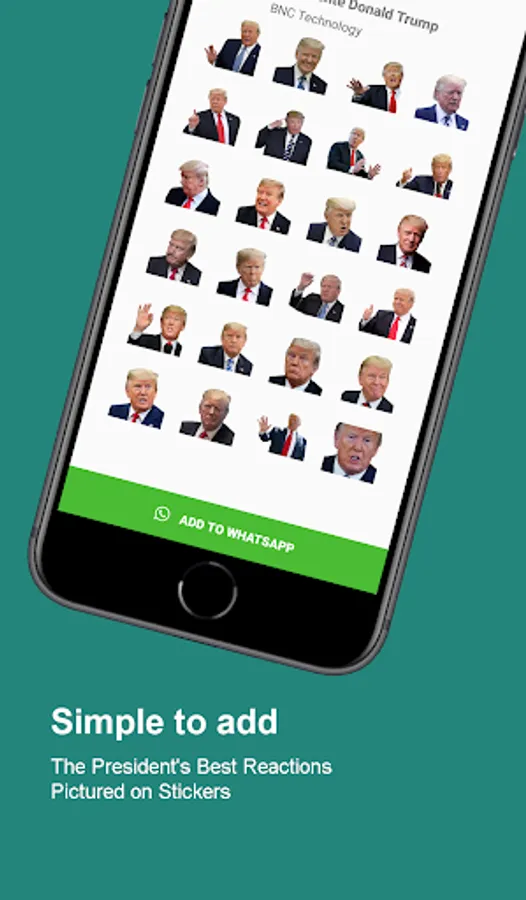 We offer over 90 high quality Donald Trump stickers for WhatsApp.