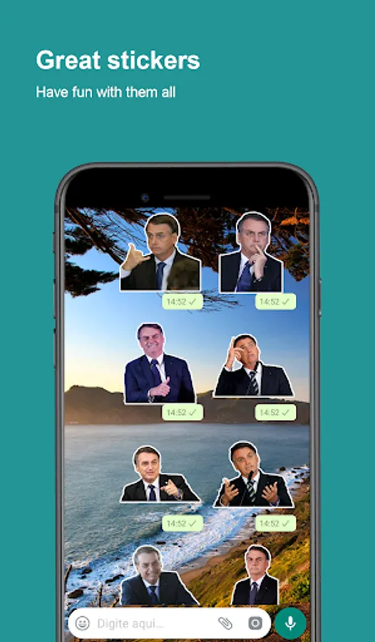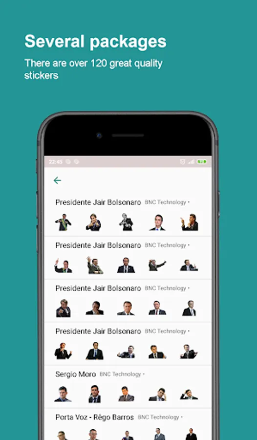The app contains over 120 great quality stickers by Jair Bolsonaro with contours around it to be seen on any background.