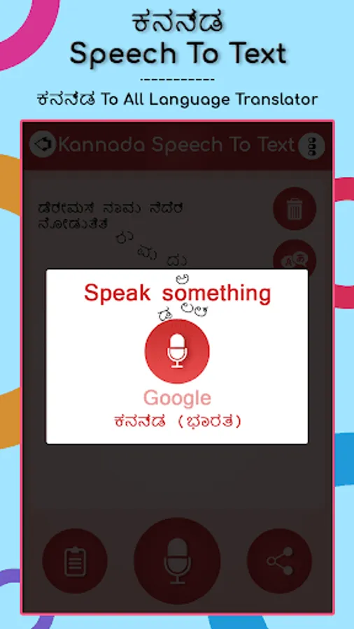 Are you a lover of native language messages and chats? This speech to text in Kannada is a great tool that translates to Kannada anything you speak with Kannada Font. You can copy and share this speech to Kannada converted text to any on a social network or personal message to your loved ones.
