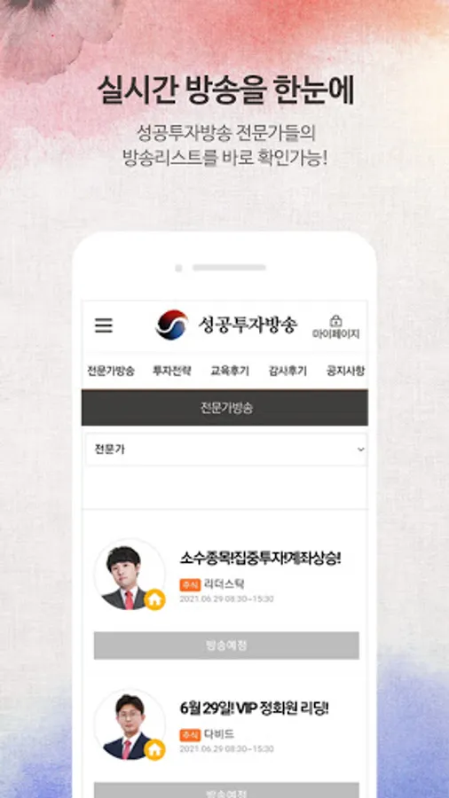 * Successful investment broadcasting is a stock broadcasting that can be viewed on a smartphone.