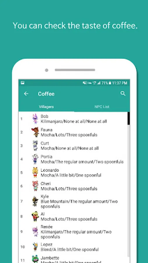 - Taste of coffee (You can check the taste of residents and NPC's coffee)