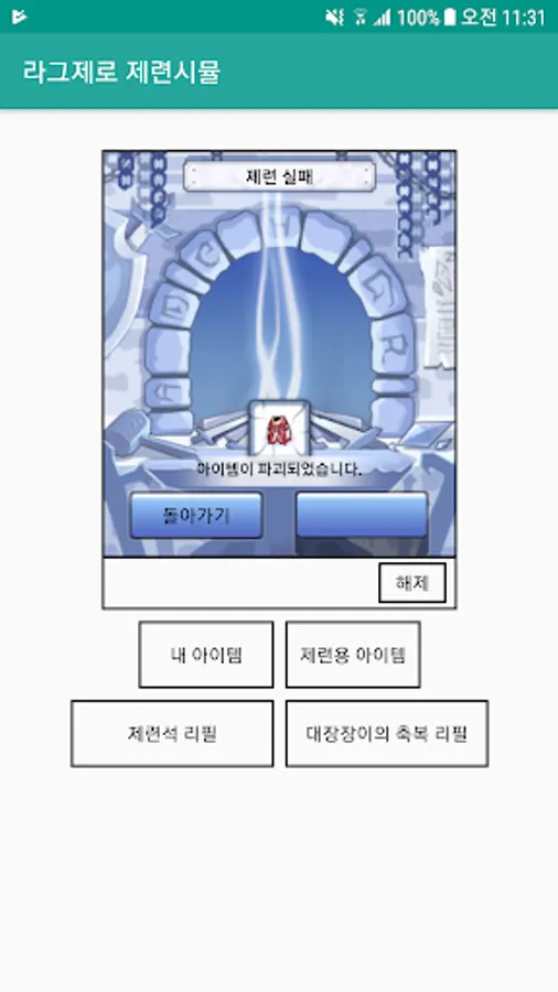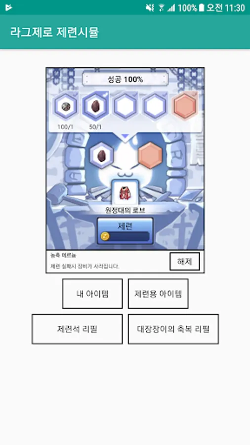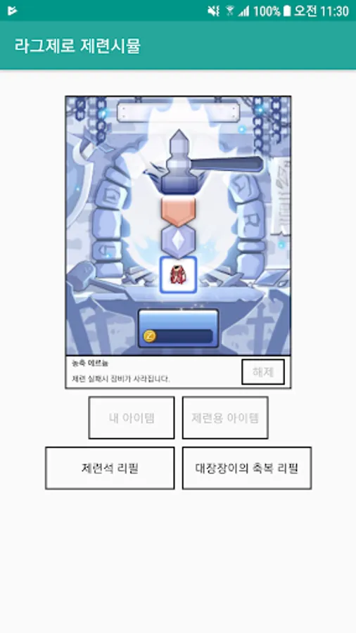라그제로 제련시뮬은 아래와 같습니다.