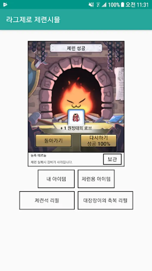 라그나로크 제로의 제련확률을 그대로 재현 하고자한(?) 시뮬레이션 입니다.