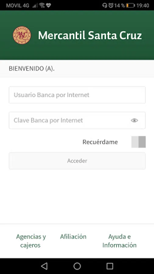 Sign in to Mobile Banking with the same username and password as Internet Banking. If you still do not have a user, you can now obtain it online through our application, by calling our Inquiry Center or by visiting one of our agencies. If you already have a username and password and do not remember them, please contact our Inquiry Center.