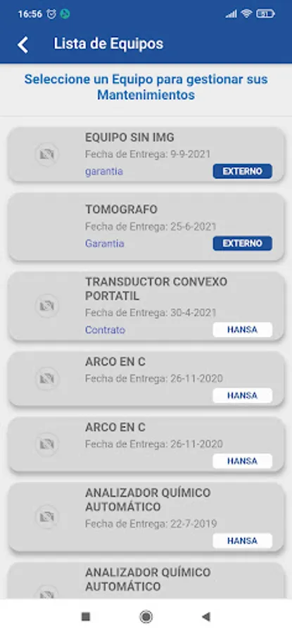 Mobile application of the HANSA Ltda. Medical Solutions Division.