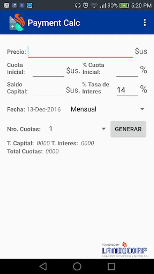 Payment Plan Calculator is an app developed by Landicorp S.A. to generate payment plans through minimum data provided by the customer.