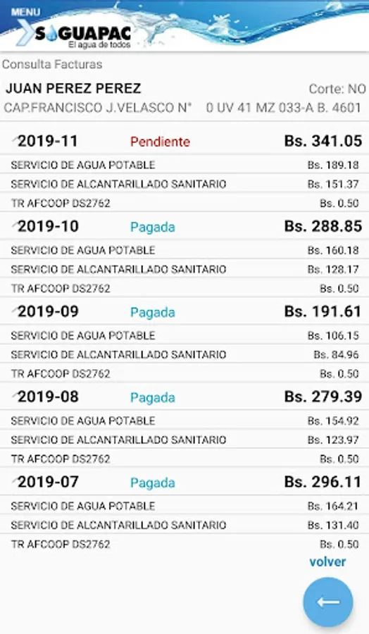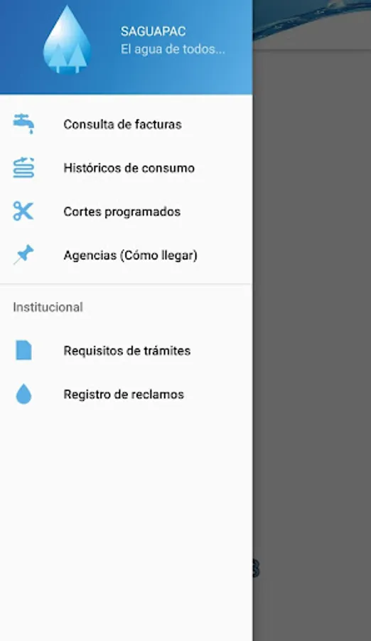 The mobile application "SAGUAPAC" has been developed to provide information about all the services offered by the cooperative to all its members through a mobile device. This mobile application has information on its Attention Branches, Processing Requirements, Scheduled Cuts, Online Services of collection notices, consumption history and the status of the partners' bills, among others.