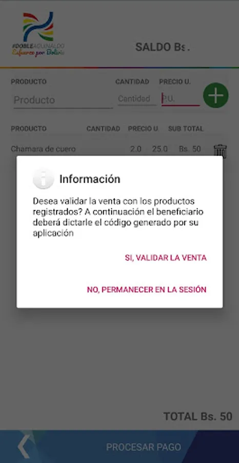 Application for registered vendors as suppliers of products made in Bolivia. With this application you can make the sale easily and also make sales inquiries for the day.
