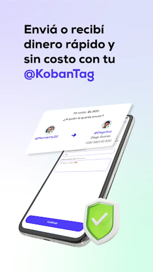 Send or receive money quickly, free of charge and to anyone with just your @KobanTag and without the need for account numbers.