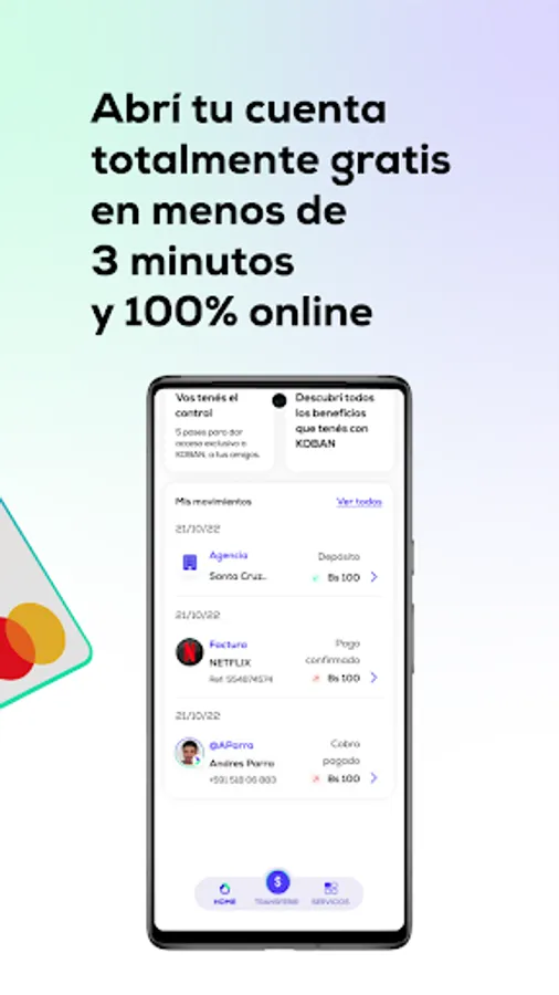 Make a deposit of 50 Bs. from any bank or Koban point to start enjoying all the benefits of your Koban Account.