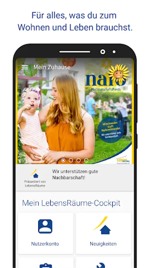 For the registration you need individual initial access data. You can request these via the Service Center or by email to MeineWohnung@lebensraeume-hy.de. You can then download the MeineWohnung app, log in with your initial access data, which we sent you by post, and benefit from the ever-growing range of services!
