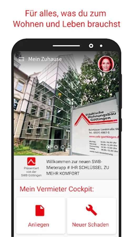 Everything in one app - free and uncomplicated - with one click! Just for you, our tenants! With the SWB tenant app, you can conveniently contact us around the clock, whether from home or on the go.
