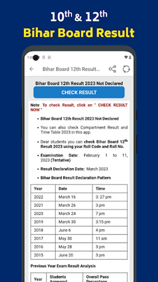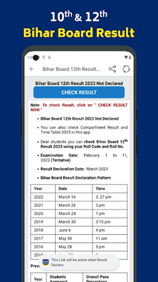 App has a notification system that helps you to get instant updates about the Bihar board Class 10th results. 12th result 2023 kab aayega ye aksar students ke man mai sawal hota hai. So to get the instant Class 10th & 12th results use this App.