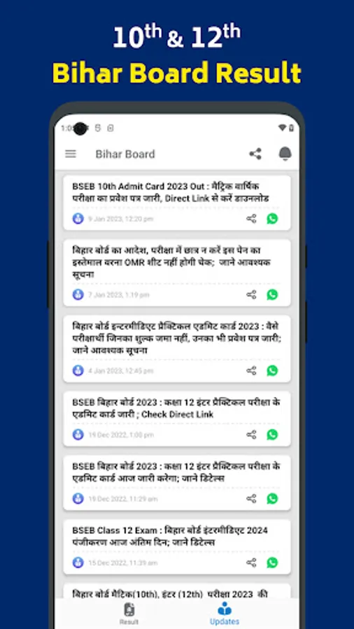 Bihar Board 10th & 12th Result 2023, BSEB Result App is a great place to get the latest Updates regarding the queries like 12th result 2023 date, Exam Date Sheet, Exam Time Table, Bihar board 12th result 2023 topper list, etc. This app is Free to download.