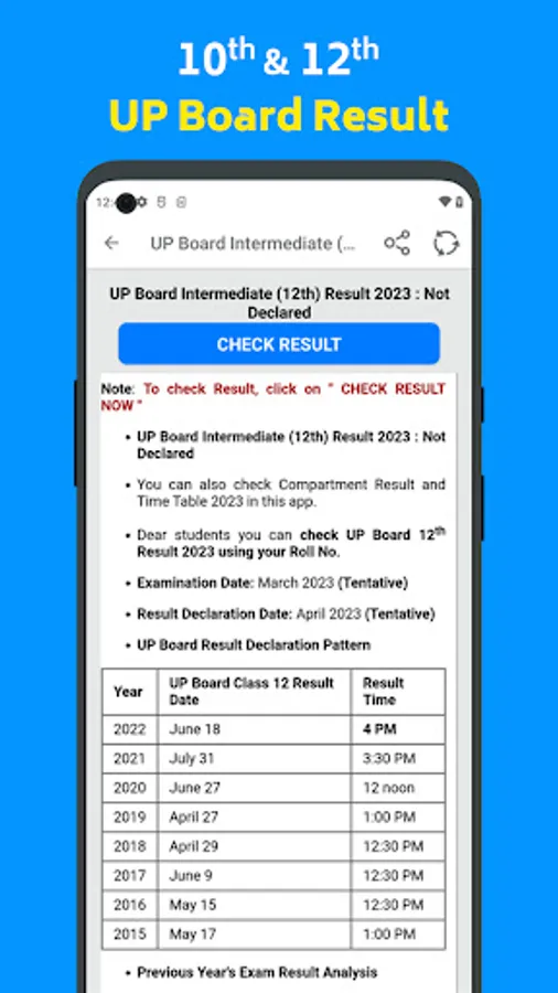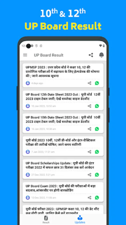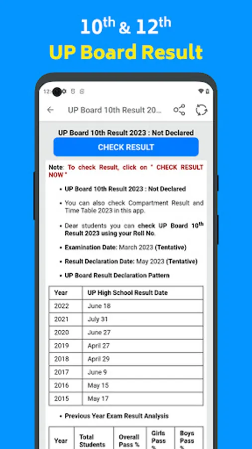 UP Board 10th & 12th Result 2023, UP Board Result App is a great place to get the latest Updates regarding the 12th result 2023 date, Exam Date Sheet, Exam Time Table, UP Board 12th result 2023 topper lists, etc. This app is Free to download and use to your benefit.