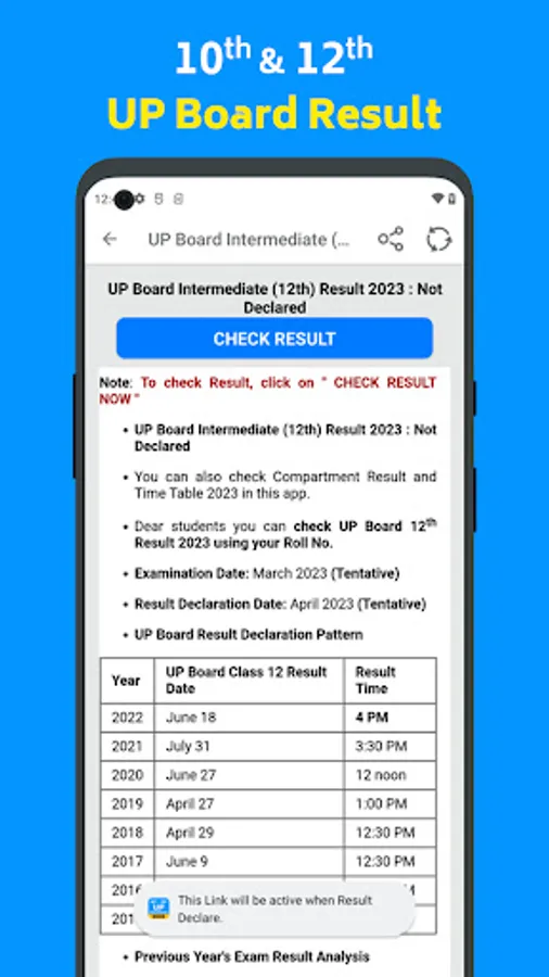 The fastest way to check your UP Board Class 10th & 12th result 2023 is by using this App. Users of this app will get an instant notification when the UP Board Class 10th & 12th result will be announced by the Uttar Pradesh Board Examination. The best and unique feature of this app is that you can register yourself on this app and you will receive the result as soon as it is released by the authority of the UP Board. Downloading the UP Board Class 10th Result and UP Board Class 12th result becomes very easy by using this app.
