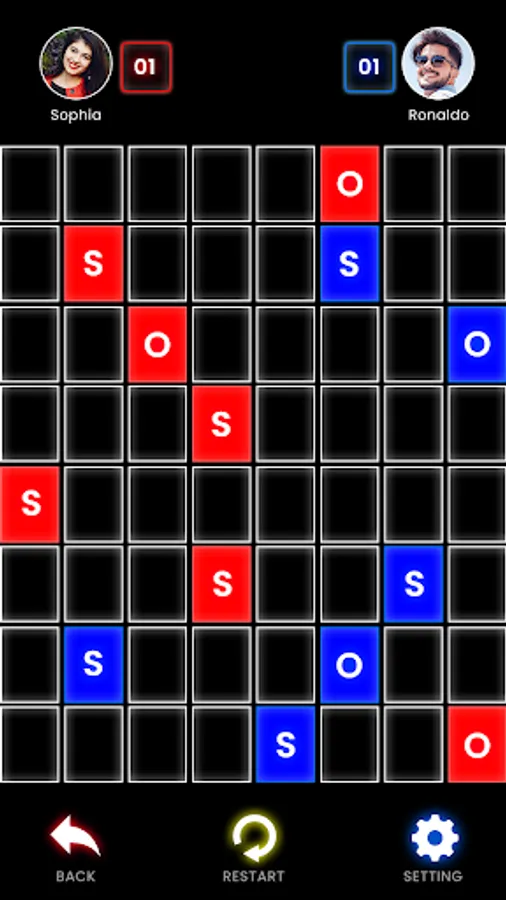 Before play begins, a square grid of at least 3x3 squares in size is drawn. Players take turns to add either an "S" or an "O" to any square, with no requirement to use the same letter each turn. The object of the game is for each player to attempt to create the straight sequence S-O-S among connected squares (either diagonally, horizontally, or vertically), and to create as many such sequences as they can. If a player succeeds in creating an SOS, that player immediately takes another turn, and continues to do so until no SOS can be created on their turn. Otherwise turns alternate between players after each move.