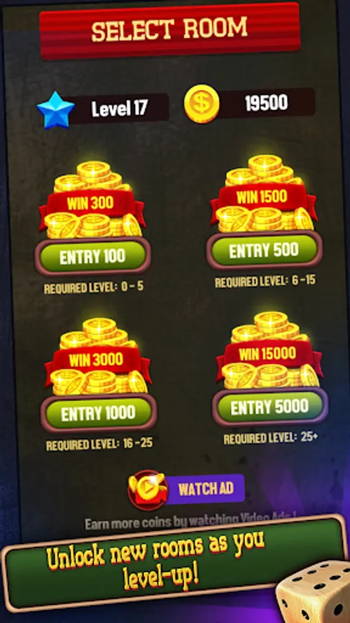 Unlock different Rooms and Levels by earning more Coins and XP and you can also Challenge your opponent for a rematch. Earn more coins by watching Video ads