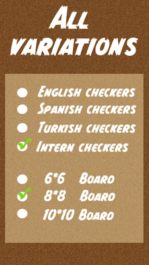 American checkers, Spanish checkers, turkish checkers, ghanaian checkers…