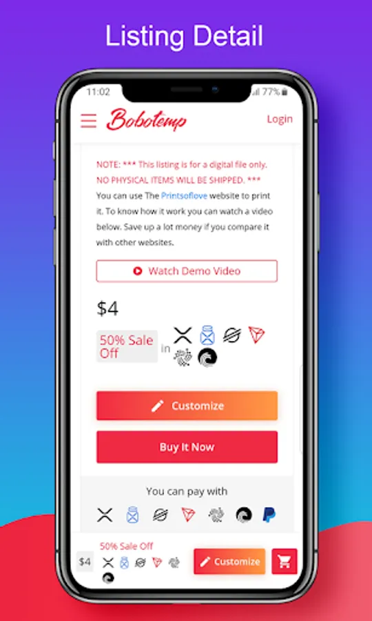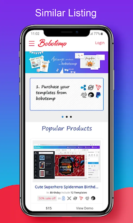 BoboTemp is an editor and visualization platform. we allow customers to edit and visualize their own purchased items. Editable - Instant Download Printable - Send Online. Accept XRP, XLM, TRX and IOTA for payment. Personalize your Birthday, Wedding, Holiday, Baby Shower, Party Invitations Template.