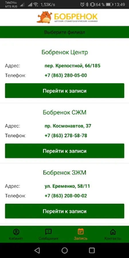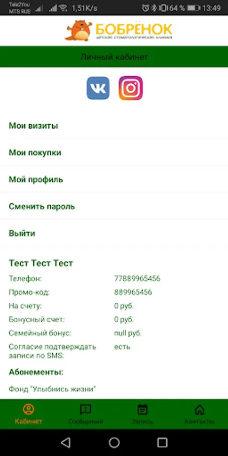 The application will allow you to see information about your visits and purchased treatment plans.